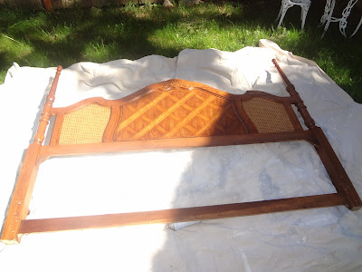 Here is the headboard I had on my bed before It was so pretty but just way to small for my huge king size bed. But don't worry I did not get rid of this beauty it has a new place now I will show on my blog soon.